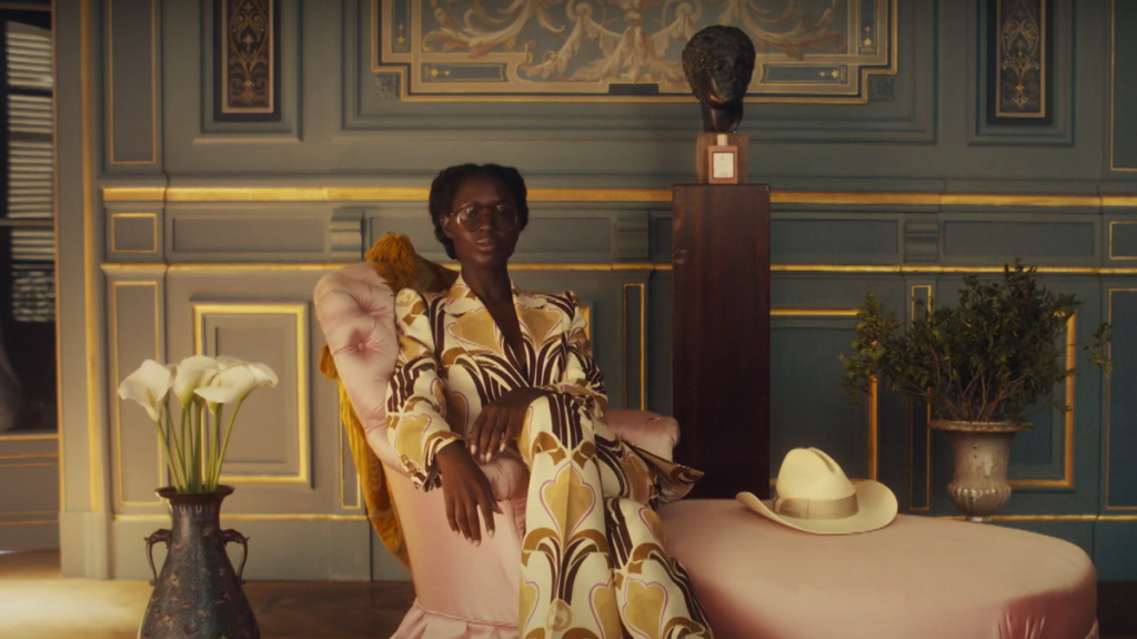 Jodie Turner-Smith perfectly matched the vibe of her hairstyle by donning a gleaming ivory gown from Burberry. The custom-made dress featured a deep plunging V-neckline with ruffled patterns around it. It also showcased gorgeous cutout sleeves. The form-fitted bodice of the gown fell into a flowy long skirt. The entire gown had dazzling adornments, making it look even more magnificent. The actor styled the gown by pairing it with a long brown fur coat. It added more drama to the look.