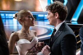 While her tattoos stole the show, Grande accessorized the gown with white pumps and a fun handbag. It featured a gold chain handle and floral embroidery, adding a hint of coziness to the otherwise regal fit. The singer also included some bling to the look, opting for an eye-catching diamond choker necklace. She paired it with matching diamond stud earrings and rings. In addition, one of those rings was pink in color, adding to the Glinda-coded ensemble.