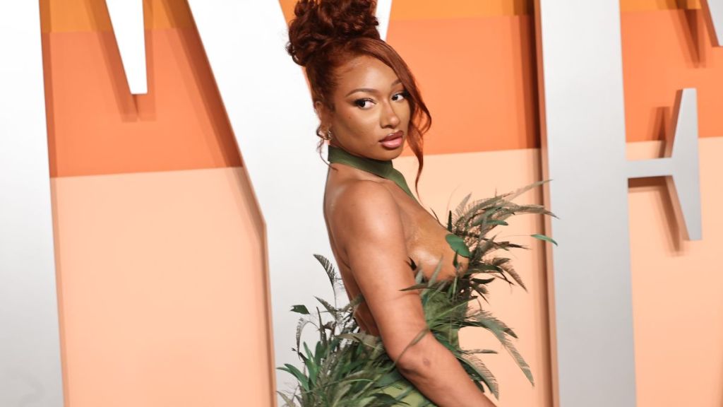 Megan Thee Stallion’s Oscars party photos showed her making a jaw-dropping attendance in a racy gown at the star-studded event. The rapper left little to the imagination and looked straight out of a tropical dream in a green piece that exposed her breasts. Megan continued to add some coverage and matched her nipple pasties with the NSFW gown while attending the 2025 Vanity Fair Oscar Party on March 2 in Beverly Hills.