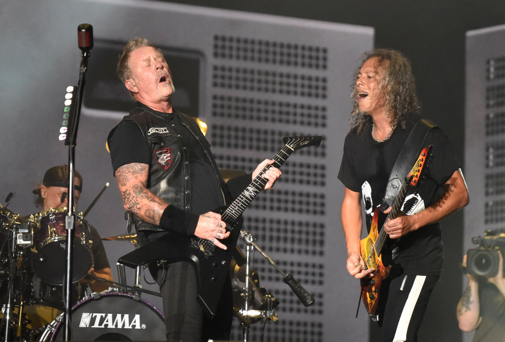 There's something decidedly un-metal about eating shit on stage, as Kirk Hammett finds out during this show in...Sioux Falls. The way he rolls around like a turtle makes it even better.