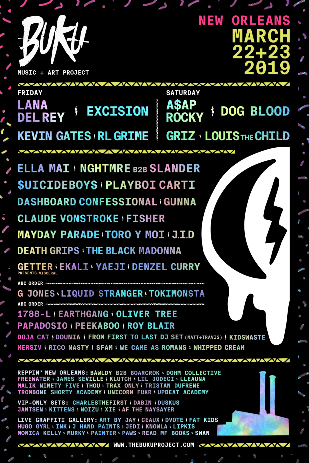 BUKU is a two-day festival in the Big Easy that aims to merge the world of pop culture with the fun and flavor of all New Orleans has to offer. This year's headline acts include Lana Del Rey, A$AP Rocky, and Griz.