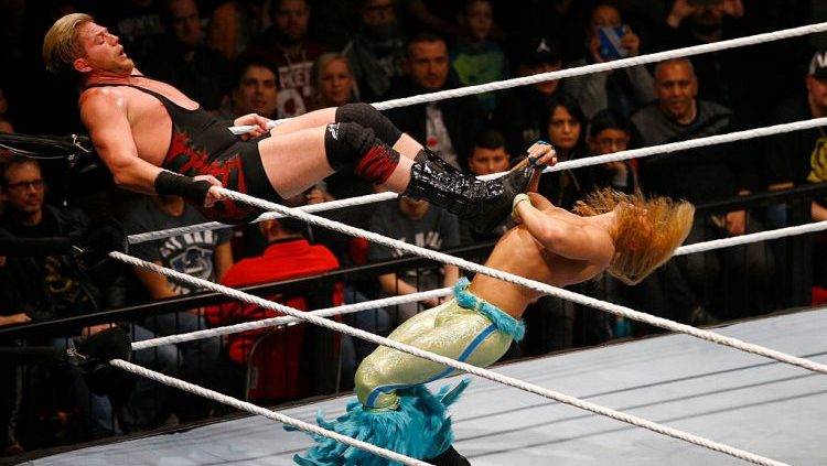 Jake Hager (as “Jack Swagger”) wrestles Tyler Breeze. Photo: Joachim Sielski / Stringer (Getty Images)