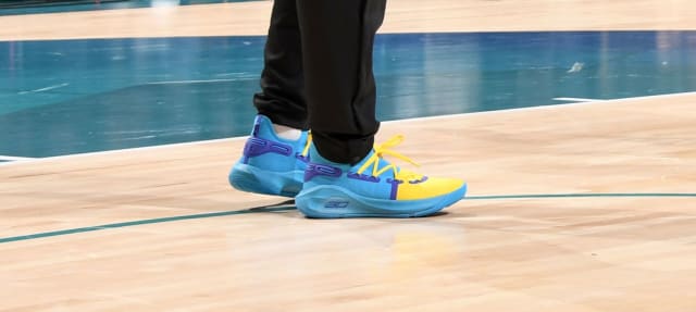 A nod to Steph Curry's childhood in Charlotte, Under Armour designed this sneaker to be a combination of Warriors gold and Hornets blue. Another example of the bi-polar colorway, these sneakers helped Curry slip in some of his customary perimeter shots. Though Curry's team lost, the city of Charlotte won when Curry asked sponsor Under Armour to skip the sneaker release party and donate the funds to a local rec center instead. He shoots, he scores.