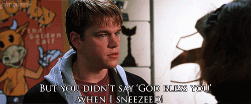 Leave it to Smith to write a wholly entertaining movie that not only attempts to deconstruct religion as a whole, but to do it in a uniquely entertaining way. From the audacious Rufus (Chris Rock) and the disgruntled Metatron (Alan Rickman) to Azrael (Jason Lee) and Serendipity (Salma Hayek), this cast absolutely stacked. The ironic part of about the controversy behind Dogma is that it was written by practicing Catholic (at least at the time.) Nevertheless, Smith’s less-than-subtle brilliance here has never truly been appreciated. Here’s a look back at some of the most subversive GIF moments from Dogma.