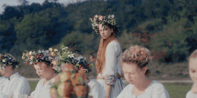A large part of the reason why Midsommar is so unnerving is due to the astounding, incredible leading performance from Florence Pugh. Although Pugh also had equally great performances in Fighting With My Family and Little Women, Midsommar is easily her most committed performance to date. And what a daring and audacious performance it is. Aside from Pugh’s work here, the element of the movie that sticks with you the most is how deeply unforgettable most of the imagery in it is. In case you forgot how deceptively unnerving Midsommar is on a visual level, here are some GIFs to remind you of this fact.