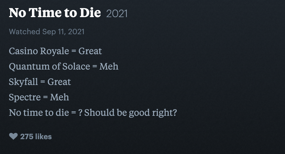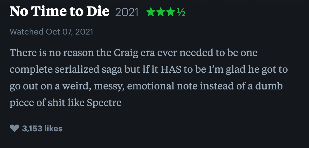 6 months removed from its delayed release, No Time To Die is certainly a divisive film. While the latest Bond film is a fitting conclusion for the Daniel Craig era, it’s also a long and overdrawn story. Suffice to say, the movie is trying to do a whole lot, sometimes successfully and sometimes not. But now that No Time To Die has been nominated for two Oscars (VFX & Sound), it seems like a natural time to look back on some of the fan reactions to Daniel Craig’s final foray as James Bond. Luckily, users on the platform Letterboxd have us covered with some of the funniest responses to No Time To Die.