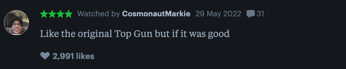 In the latest edition of Honest Movie Reviews, we’re pulling together the funniest audience movie reviews on the internet. From funny to ironic, truthful to the downright silly, we’re diving into the deep, dark rabbit hole of online movie fandom. Today we turn our attention to Top Gun: Maverick.