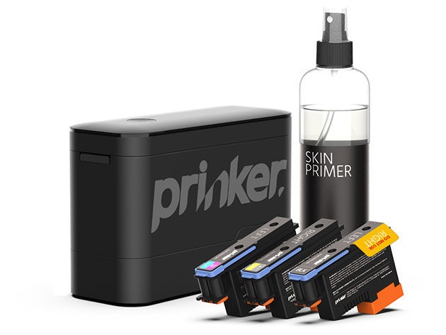 Get the Prinker® S Tattoo Device with Black And Color Ink Sets, which includes two-color ink cartridges, a rechargeable battery, black ink cartridge, skin primer, and user manual, for $379.95 (Reg. $448).
