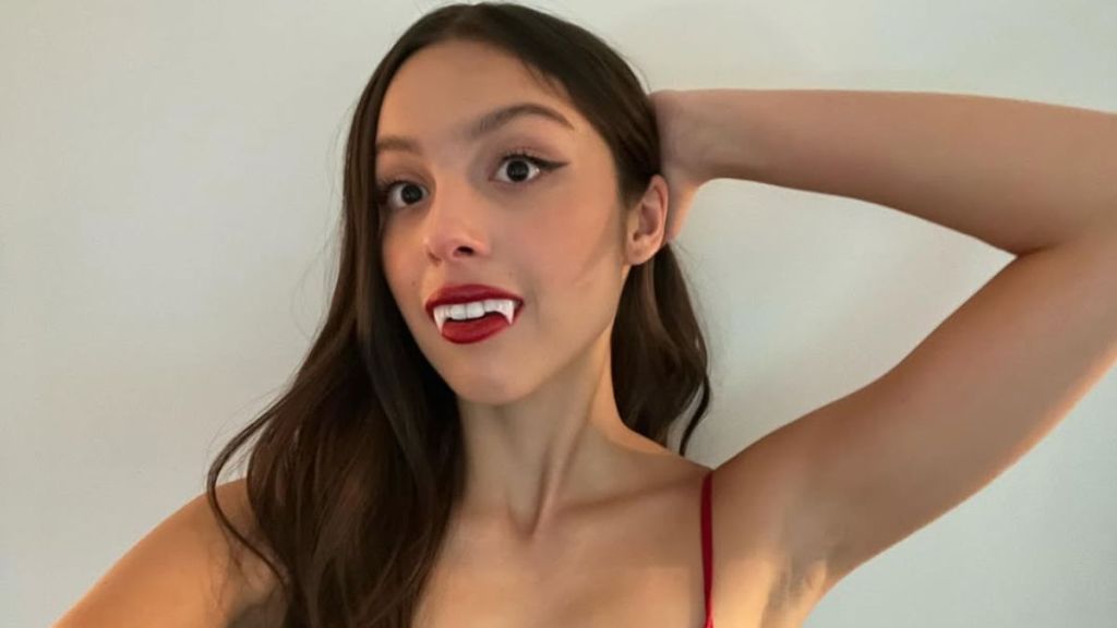 Olivia Rodrigo pairs red latex minidress with matching stockings and heels