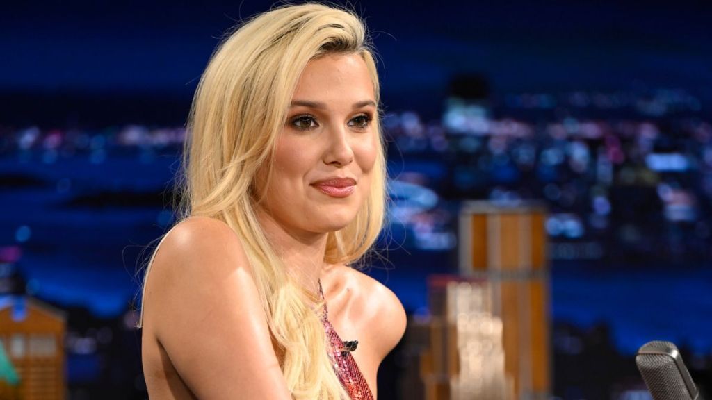 Millie Bobby Brown made a dazzling appearance on “The Tonight Show Starring Jimmy Fallon” as she wore a glittering slinky top and a skirt. The British actor featured in the new segment to promote her new film, “The Electric State,” which was released earlier this month. Brown opted for a Paco Rabanne look for the appearance, which was even more special as it marked her 10th time on the talk show.