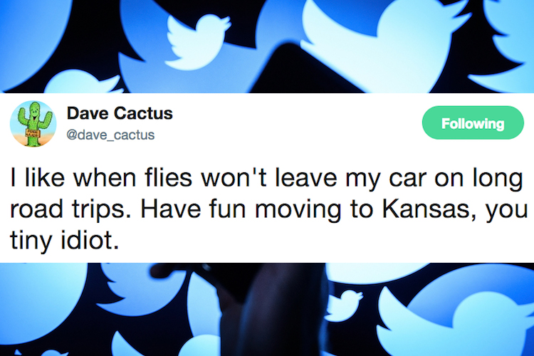 I like when flies won’t leave my car on long road trips. Have fun moving to Kansas, you tiny idiot.