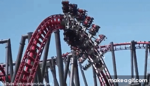 Twisted Colossus' magnum opus? When two trains are perfectly synced, there’s a section of the track where the trains “race” each other, with one hanging upside down over the other. This is roller coaster perfection.