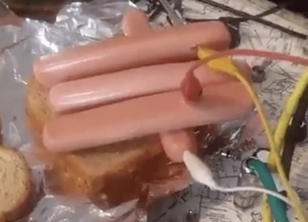 The video was actually from someone called “echo lightwave unspeakable” aka Jonathan Hodges who has actually made more than one video using hot dogs to make music. The strange, ominous, vibrating, doomsday sounds are made using an electronic acupunctoscope, something actually used for acupuncture. We don’t know why he decided that hot dogs were the right medium to create soundscapes, but we’re guessing it had something to do with a mid-day quarantine lunch/porn mishap with a happy ending.