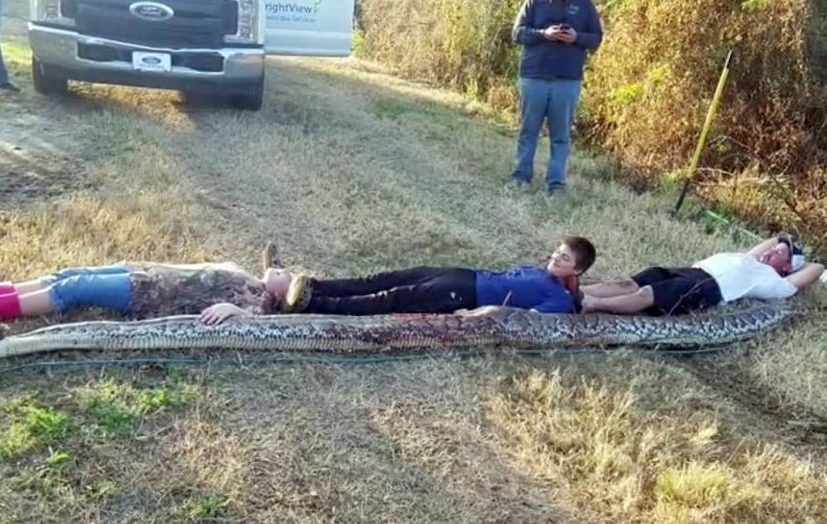 Frolicking with your friends in the wetlands of Florida always runs the risk of encountering a snake in the grass, but rarely is it a 300-pound python on the prowl for breakfast. While driving on his property in Zolfo Springs, Aaron Brown saw something he’d never thought he’d see slithering in the sod. As he pulled over to take a closer look, he realized it was a 16-foot long Burmese python.