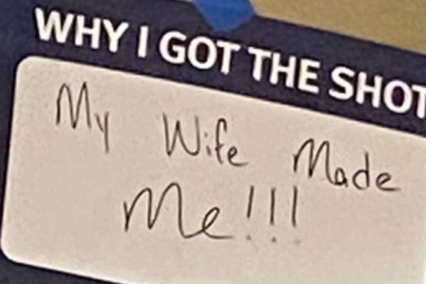 To wit: a vaccine site in Fayetteville, North Carolina, asked vaxxers to fill out stickers identifying their motivation for getting the vaccine.