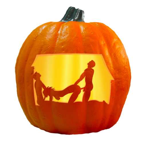 That’s what X-rated jack o’ lanterns are for. Any position in the kama sutra is prime pumpkin-carving material. Don’t have a copy of the go-to guide for creative fucking or lack experience in the sack? No problem. Some perv invented a “Pornkins” kit with 10 designs that will take you step-by-step from innocent orange orb to something truly jaw-dropping.