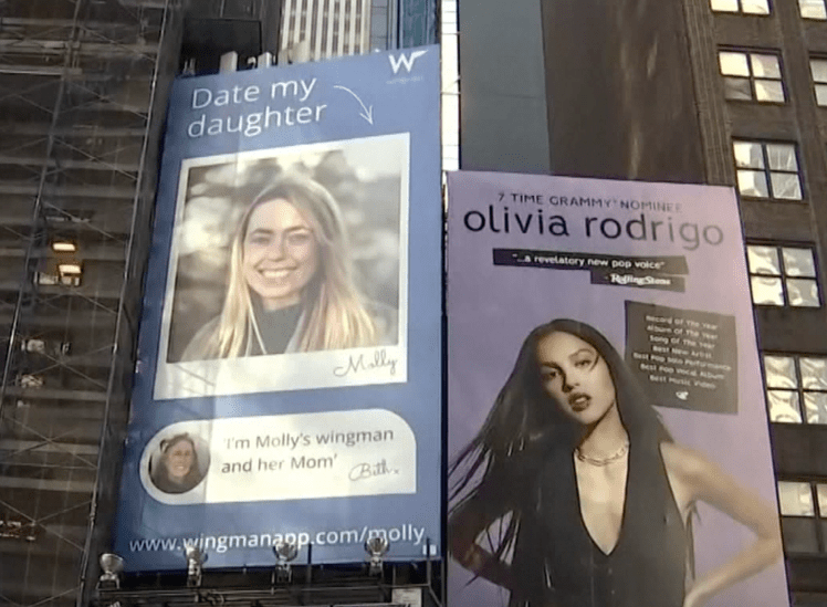 Teaming up with Wingman, a dating app where friends vouch for you, Beth Davis set up a profile for her daughter Molly in the hopes that the 30-year-old would find a husband. But rather than leave it to the chance of smartphone thumb swipes, Davis splurged on a billboard in the busiest street in America.