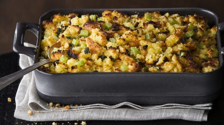 If you want your stuffing to taste like nachos (c’mon, who doesn’t?), take it South of the Border with this Mexican twist on the traditional. The addition of queso, spicy chorizo, and crunchy tortilla chips is the perfect blend of textures and flavors to pull you out of the funk of your old stuffing recipe. Wash it down with a margarita and be grateful for tequila when your Uncle Bill starts talking politics.