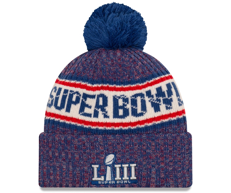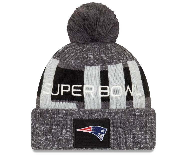 This Patriots knit cap will be worn by the players and coaches on the sideline during Super Bowl LIII. Retailing for $32-$34, they're available now on neweracap.com and at select retailers.