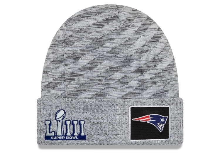 Stay warm with this knit cap featuring the Patriots' logo and a Super Bowl LIII logo. Retailing for $28-$32, these caps are available now on neweracap.com and at select retailers.