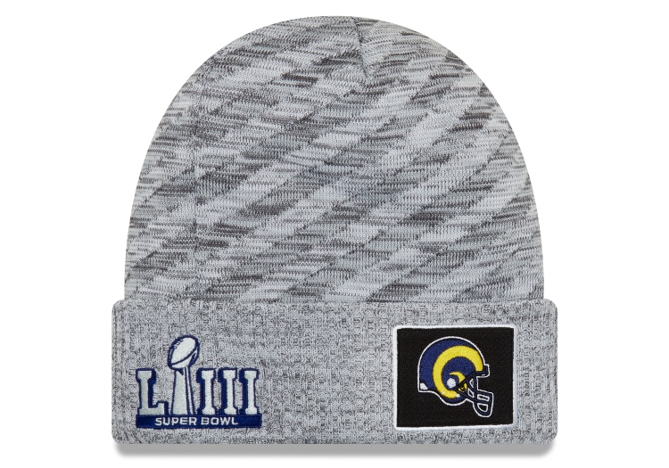 These knit caps celebrate the Super Bowl with the Rams' logo and a Super Bowl LIII logo. Retailing for $28-$32, these caps are available now on neweracap.com and at select retailers.
