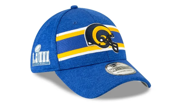 These hats create a distinct look celebrating the Super Bowl using the Rams' logo and a Super Bowl LIII logo. Retailing for $28-$32, these caps are available now on neweracap.com and at select retailers.