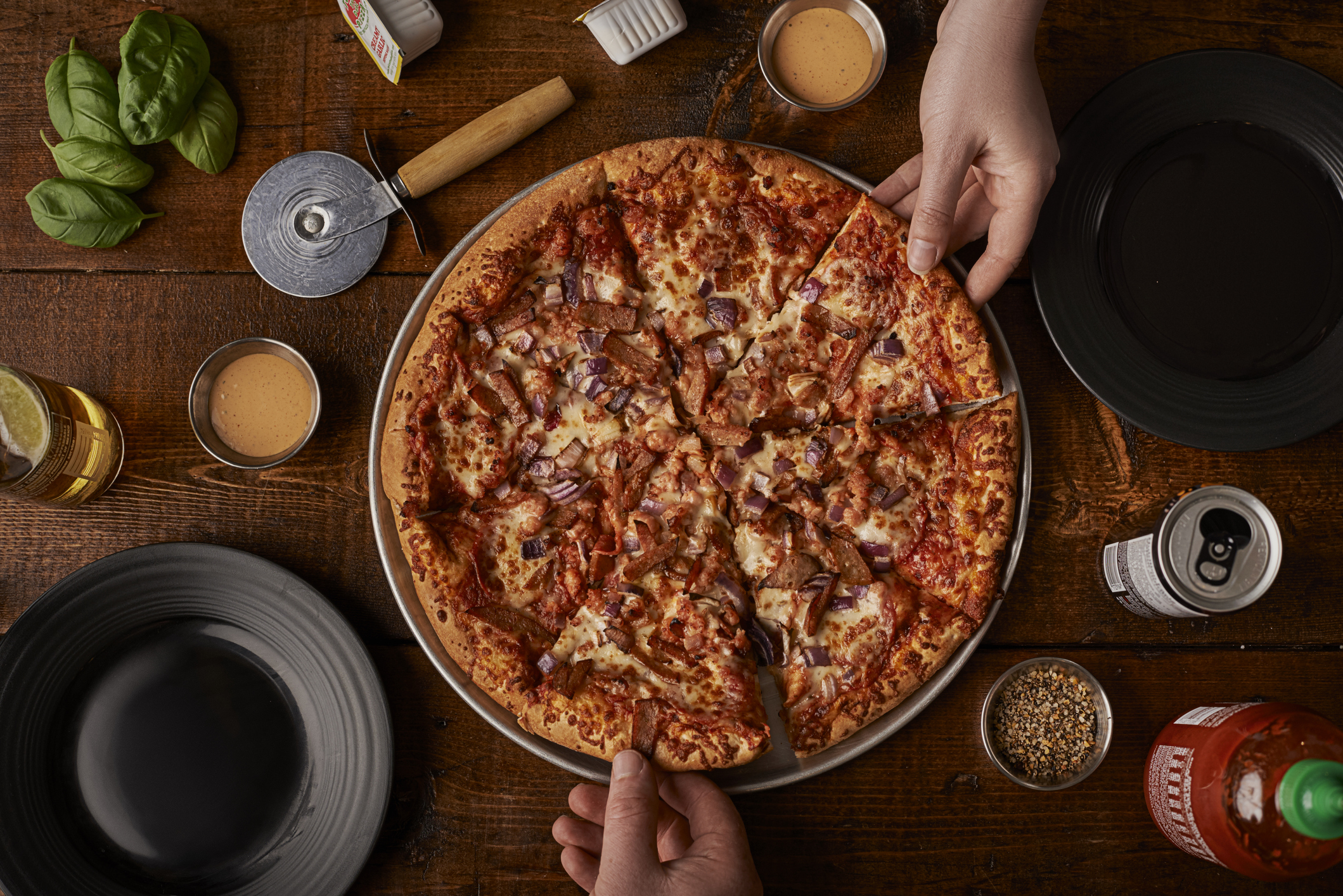 Celebrate National Pizza Day with a large three-topping pizza for only $7.99 when you carry out.
