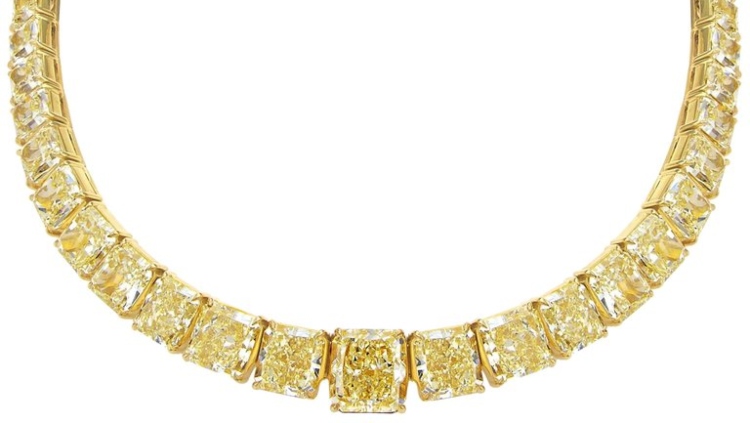 Magnificent one-of-a-kind fancy yellow diamond necklace, set with 183.08 carats of fancy yellow diamonds.Photo: HushHush.com
