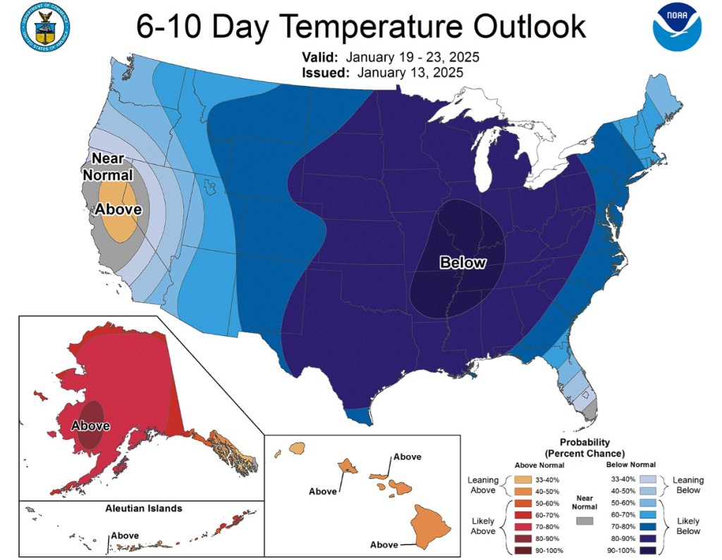 The future forecast by the NOAA on January 13, looking at the temperature outlooks from January 19 to January 23, predicts that the states in the Ohio Valley will very likely become the coldest. This includes Missouri, Illinois, Indiana, Kentucky, Tennessee, Arkansas, and Mississippi. The NOAA has not yet issued an extreme cold warning or winter weather advisory yet, but either might be officially issued as we get closer to the weekend.