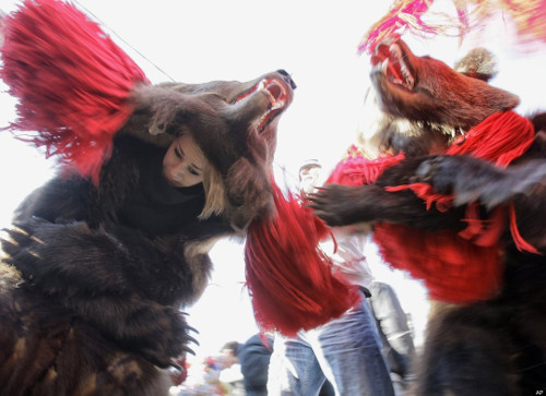 Along with farmers attempting to talk to their animals, another ritual for Romanians to partake in on New Year's Eve involves them wearing bear costumes (or, if they're feeling less in the mood, brightly colored clothing), traveling to different houses and dancing in order to ward off evil demons.