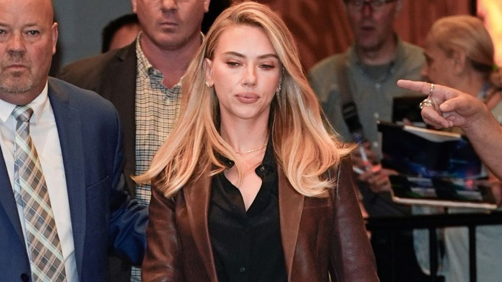 It seemed Scarlett Johansson stylishly rang in fall in her new NYC photos with all-brown businesswear that combined equal amounts of work and pleasure. She just made a word outfit so snazzy, you’d want to have a second look and then some more. In the snaps, Johansson rocked a leather, brown blazer over a satin black shirt, which not only added a pop of pizzazz but also gave corporate-core a twist like no other. She then completed the look with matching trousers.