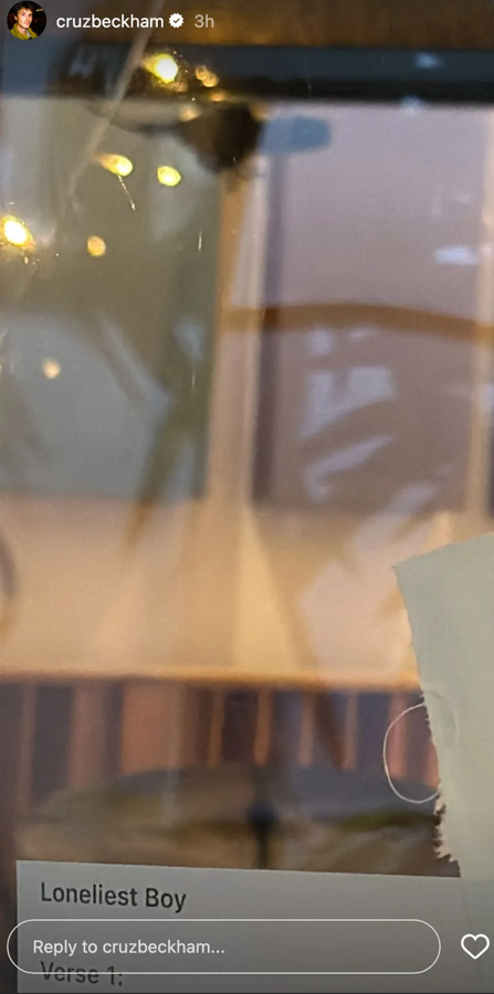 In a second Instagram Story, Cruz posted a black-and-white image of a paper that read “Loneliest Boy” and “Verse 1.” He did not add a caption or provide context. Some viewers interpreted the post as a reference to Brooklyn, who recently wrote, “I do not want to reconcile with my family. I’m not being controlled, I’m standing up for myself for the first time in my life.”