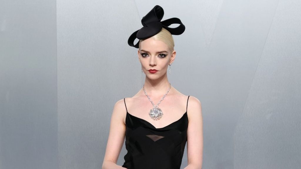If the fit wasn’t striking enough, Taylor-Joy elevated the look with luxe accessories. She opted for a pendant, earrings, and platinum rings with diamonds by Tiffany & Co., adding sophistication to her outfit. She completed the ensemble with black heels and a sculptural black hat. Her bold eye makeup paired with red lipstick made her look effortlessly glamorous.