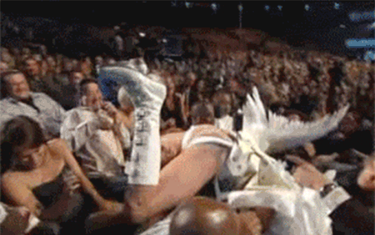 During the 2009 MTV Movie Awards, Bruno took flight. His wire act appeared to go awry, landing bare-butt-to-face in the lap of Eminem; furious, the rapper stormed out of the venue. Audiences didn’t know what to think. In reality, Eminem was in on the skit but the initial confusion sure was something.