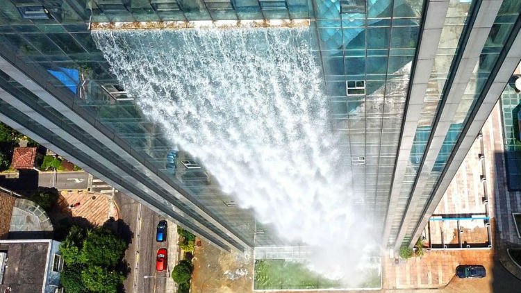 Chinese Company Builds 350-Foot Waterfall Off Side Of Skyscraper